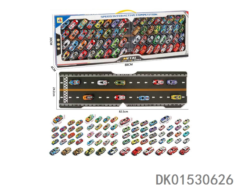 64只礼盒装6.8CM铁皮回力车模+带纸板赛道