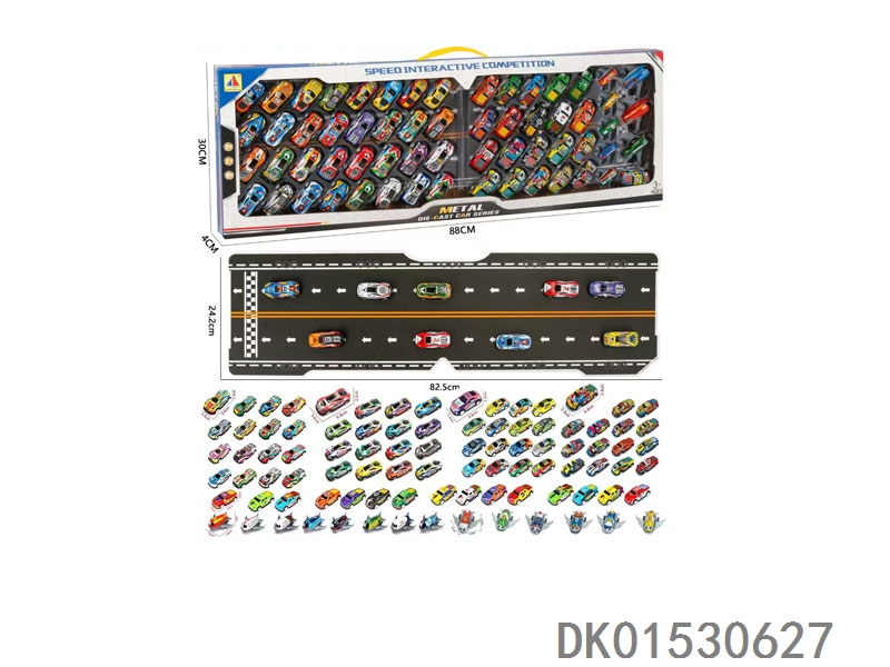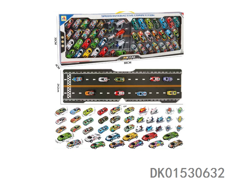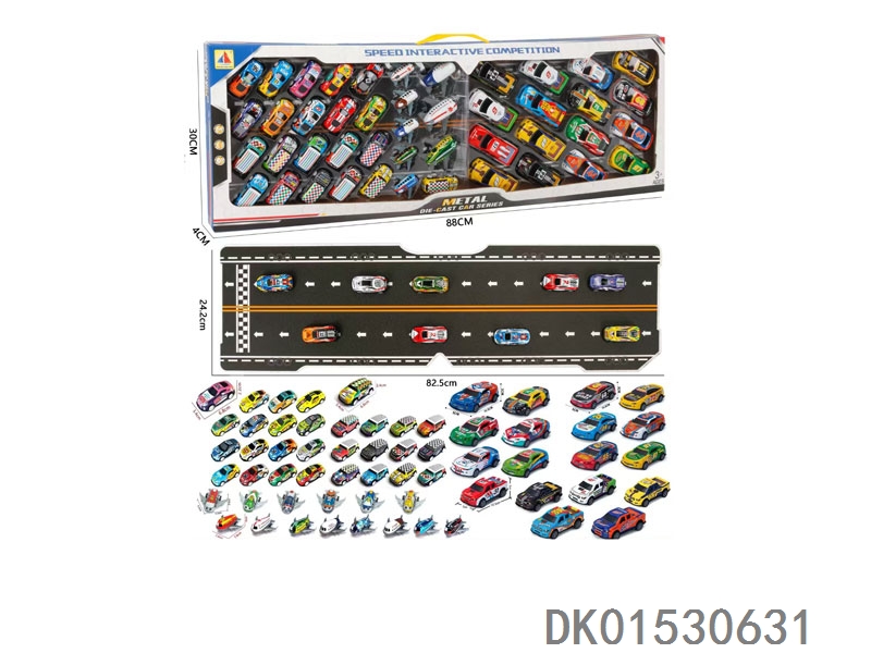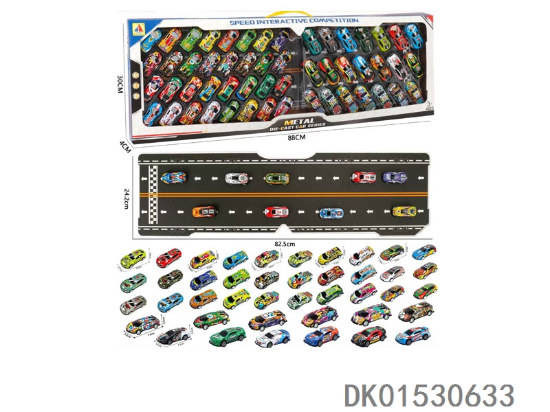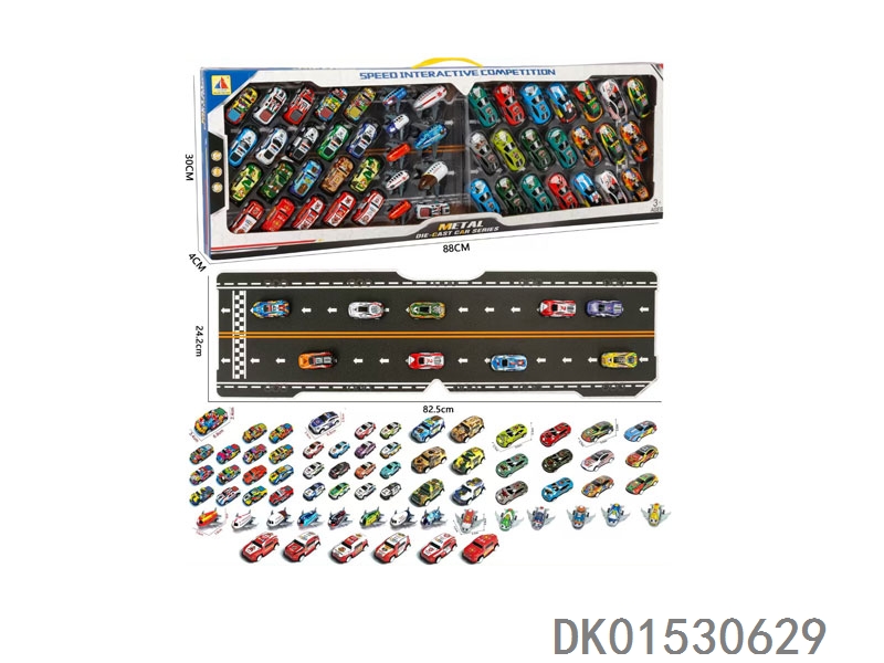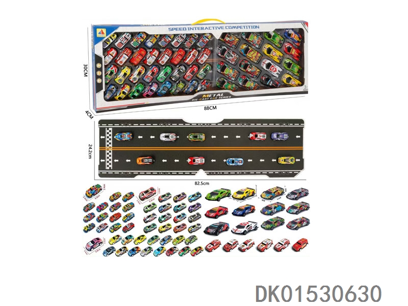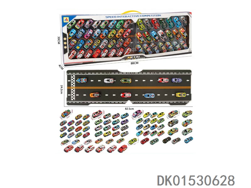 53只礼盒装铁皮回力车模+带纸板赛道(6.8CM32只+8.6CM21只)