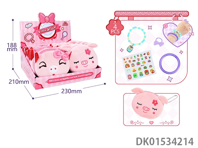卡通萌猪过家家女孩首饰饰品毛绒零钱包(16PCS)