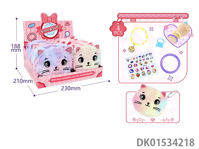 卡通七彩猫咪过家家女孩首饰饰品毛绒零钱包(16PCS)