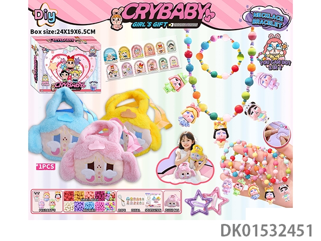 DIY哭娃毛绒斜跨包配串珠美甲套装