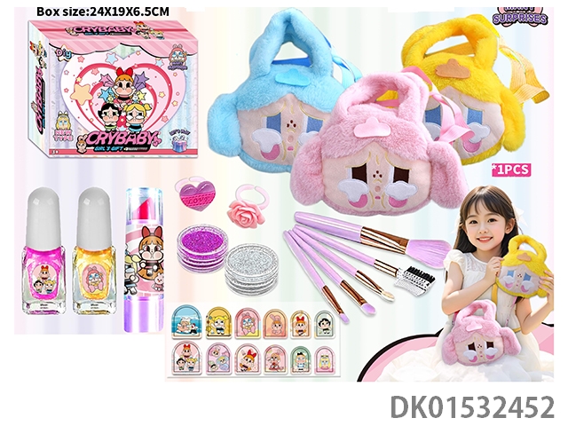 DIY哭娃毛绒斜跨包配美甲唇膏闪粉套装