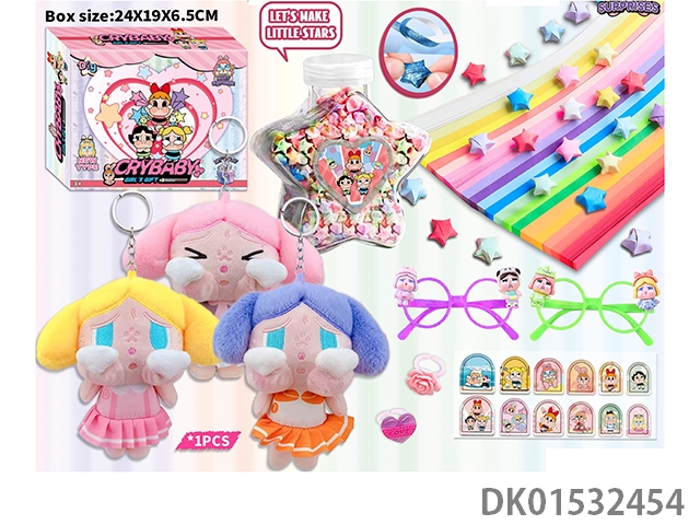 DIY哭娃毛绒公仔配折星星眼镜美甲贴套装