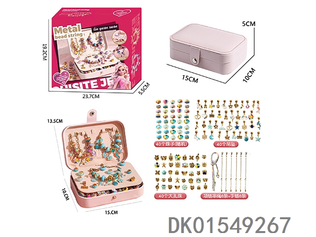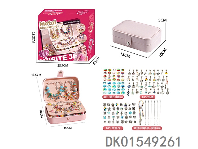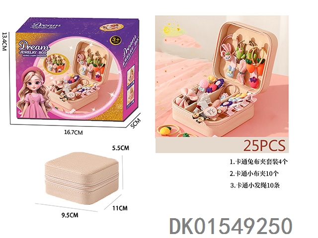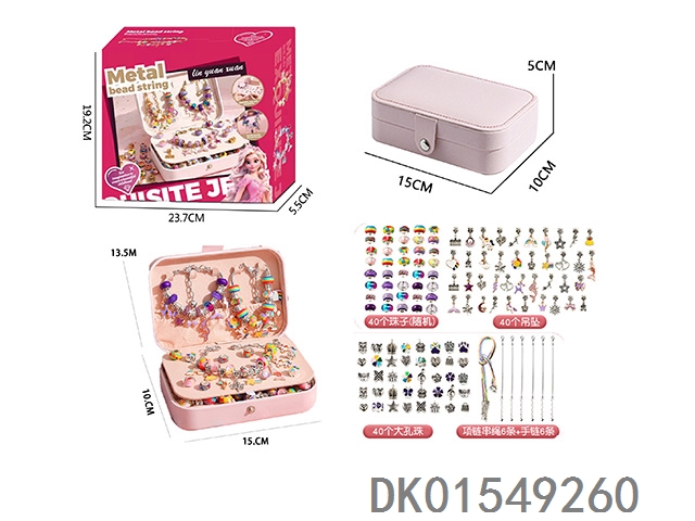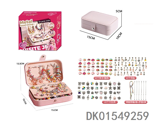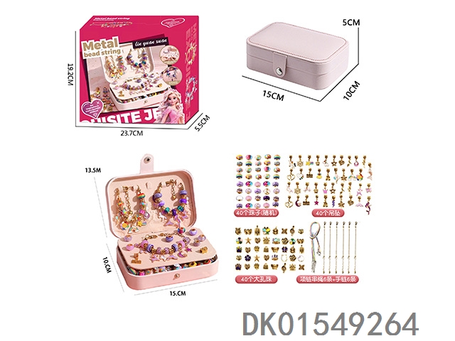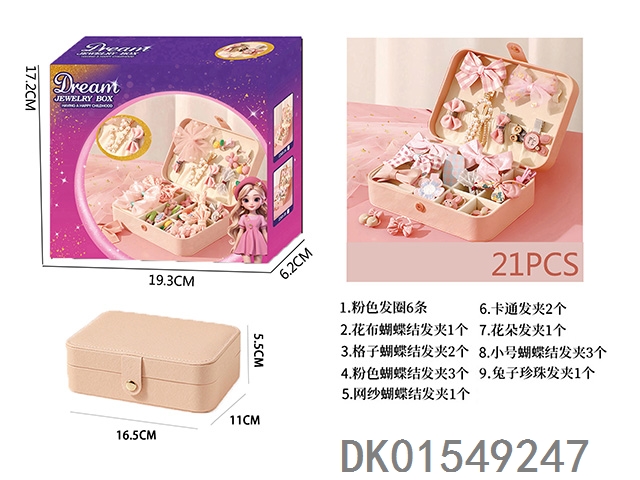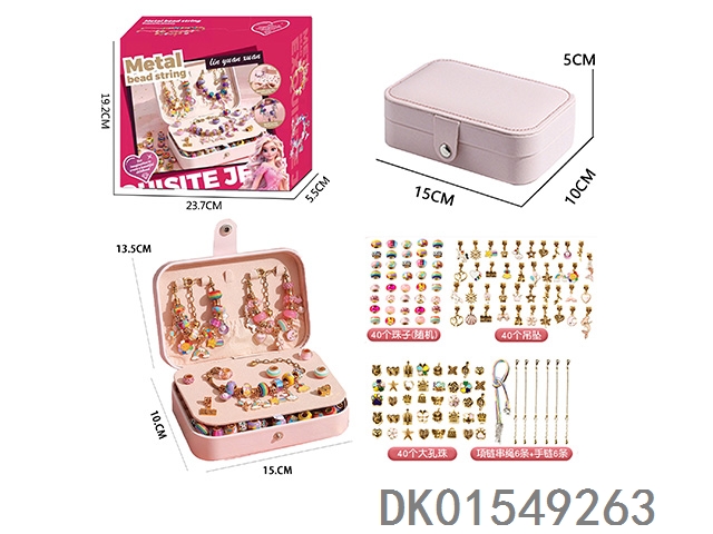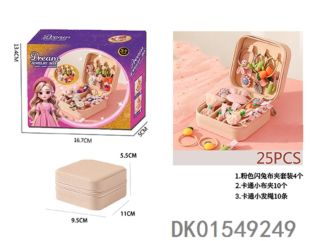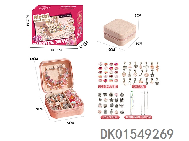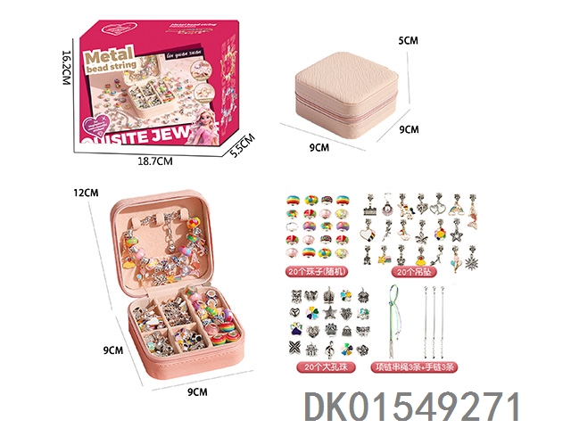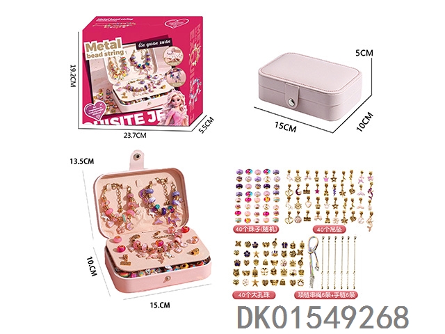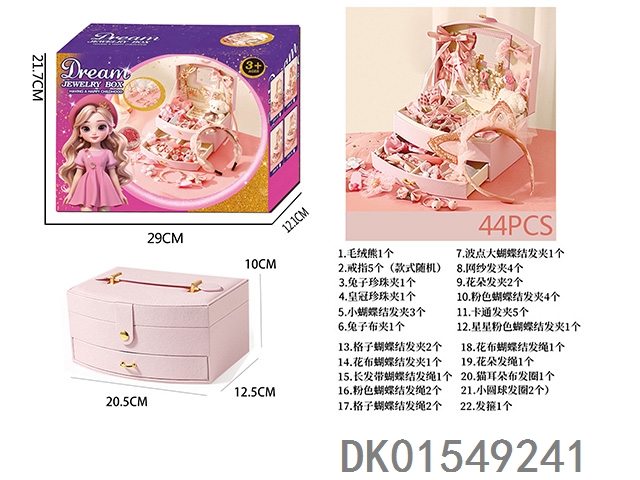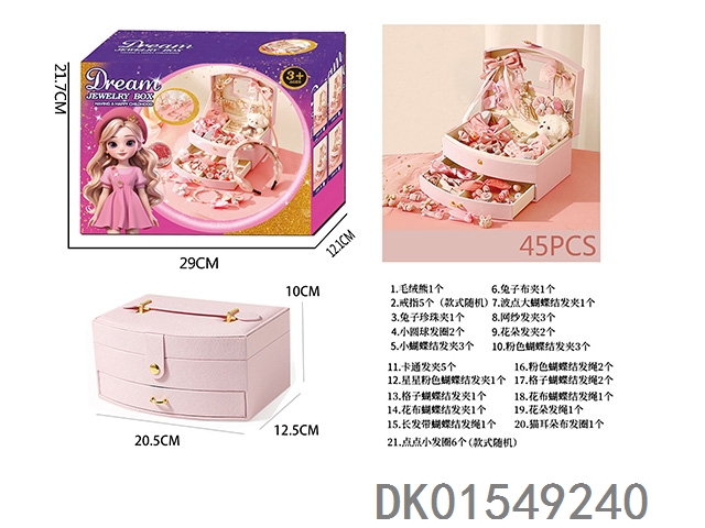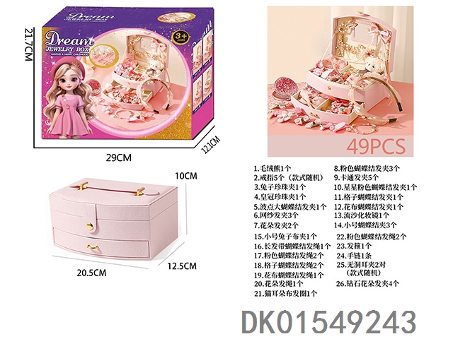 A款双层方盒 樱粉银色基础配套67PCS女孩精美饰品套装