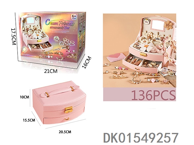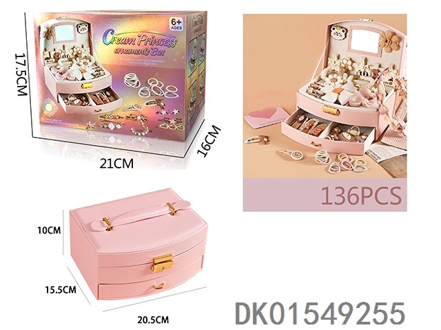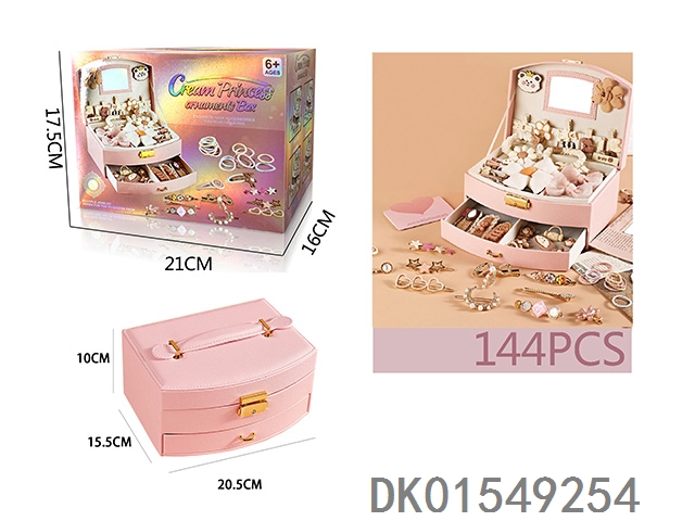 A款三层长方盒 糖果金色+樱粉金色133PCS女孩精美饰品套装