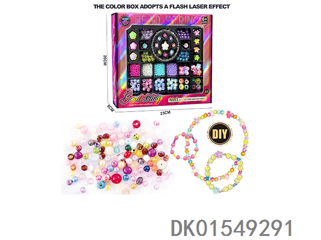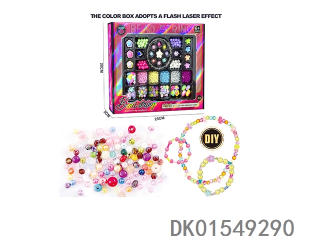 4合1 荧彩透明珠+珍珠套装女孩过家家饰品玩具