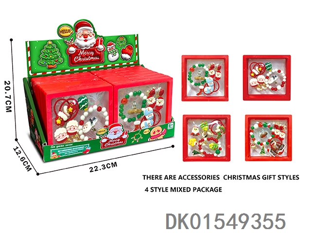 手串+皮筋+耳坠(3合1)圣诞饰品套装12小盒入一展示盒女孩过家家饰品玩具12pcs/box