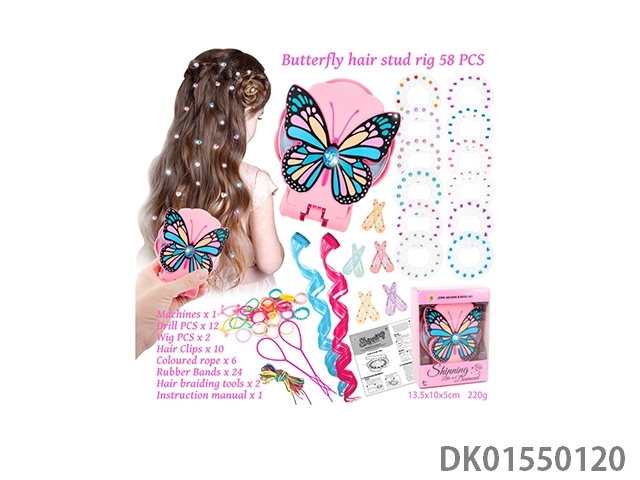 58pcs头发粉色蝴蝶钉钻机
