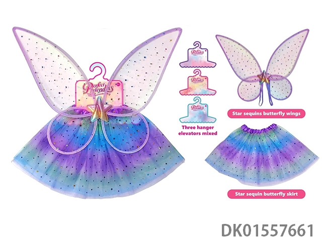 紫色梦幻星星月亮亮片蝴蝶翅膀+裙子装扮套装公主裙过家家2件套
