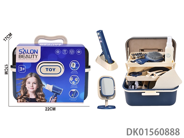 女孩过家家仿真美发套装(带吹筒、化妆镜15件套)