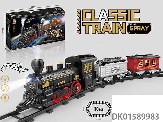 (仿真火车头+2节拖板:配随机2只合金跑车+1个货厢+1个客厢)