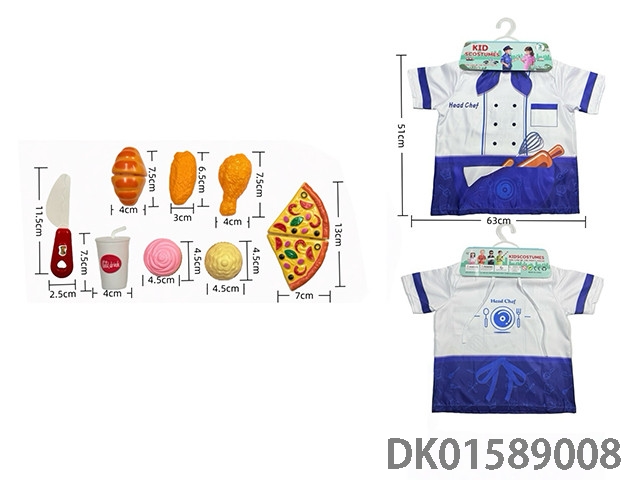 跨境儿童过家家DIY服装角色扮演厨师服+9件套(加厚)蓝