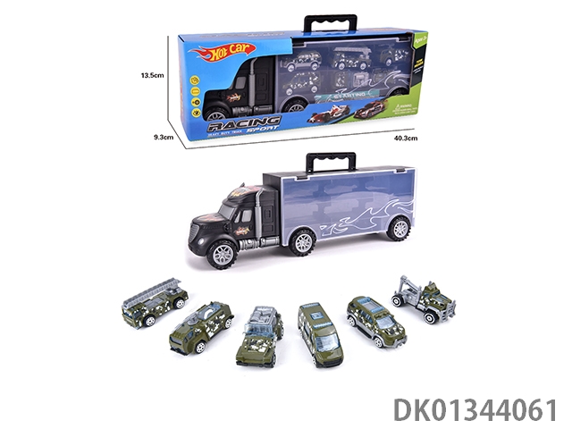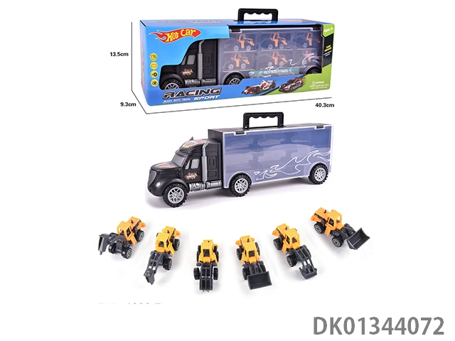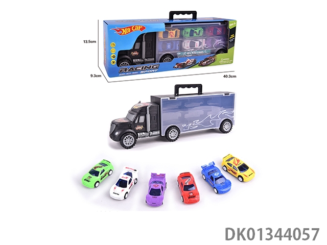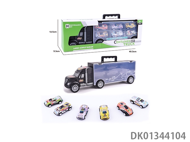 手提收纳货柜滑行拖头车带6只滑行合金跑车