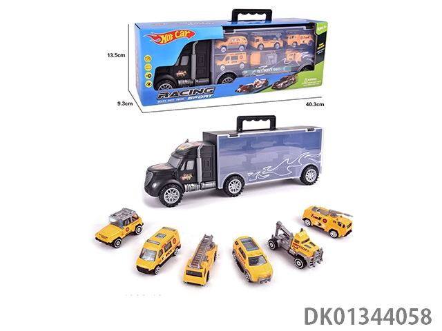 手提滑行收纳货柜车(6只滑行合金消防车仔)