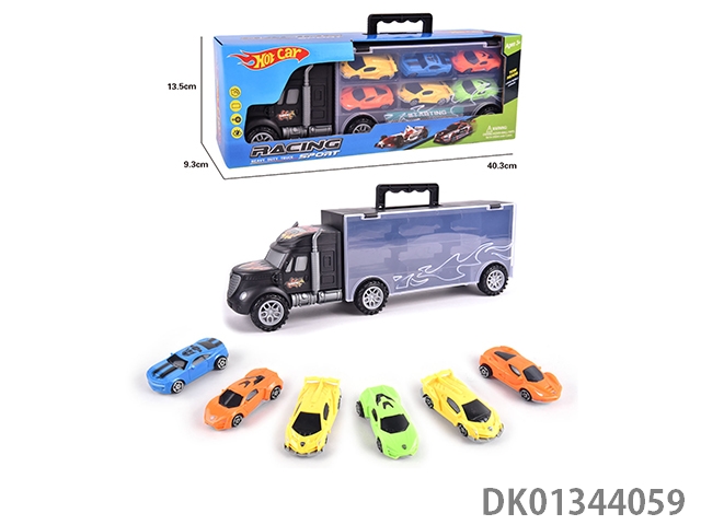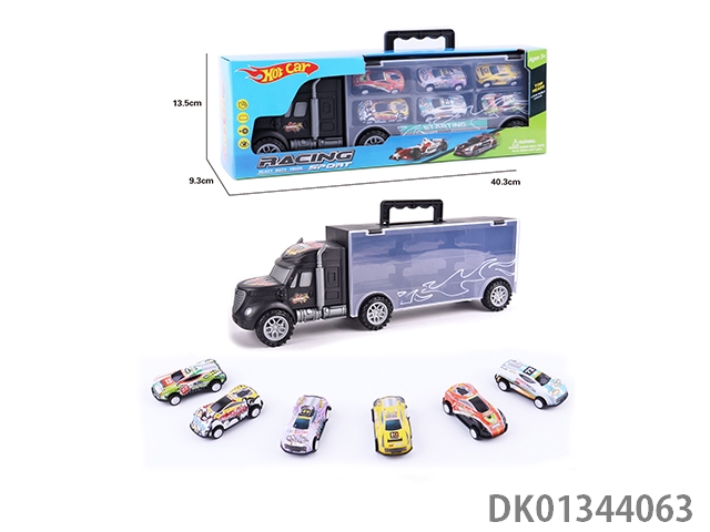 手提礼盒货柜滑行拖头车带6只滑行合金公路赛车