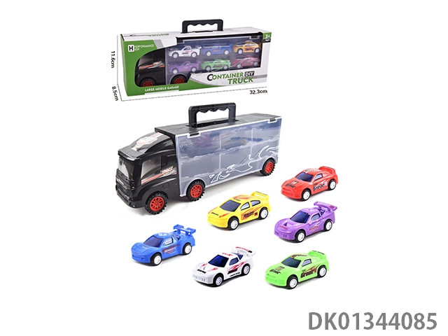 手提收纳货柜滑行拖头车带6只滑行涂鸦赛车