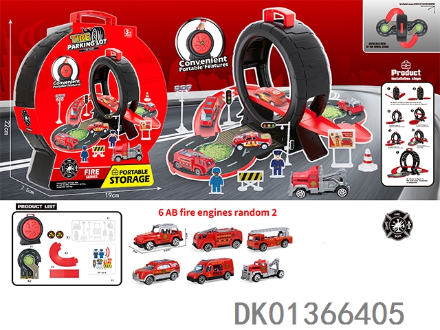 消防轮胎场景收纳盒(3铁皮车+地图)
