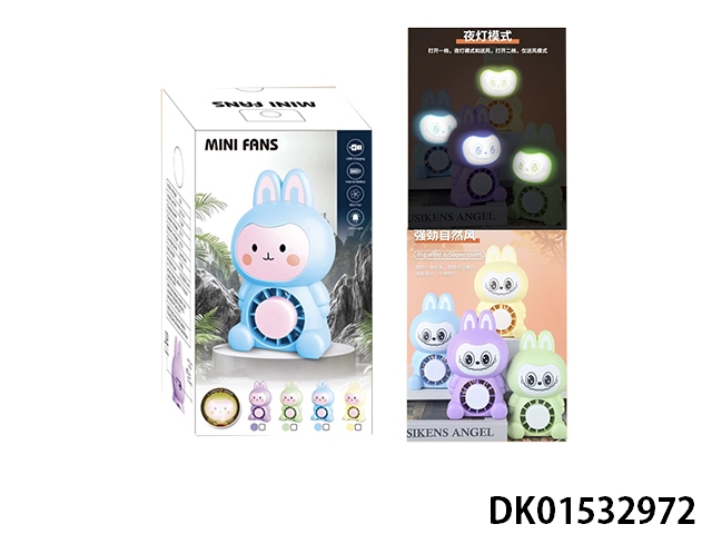 卡通兔子迷你风扇3档风速带7彩夜灯
