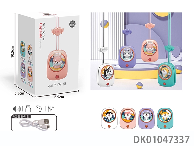萌宠海豚无叶挂脖充电风扇 3档 (USB)