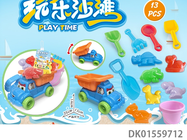 大卡车配恐龙沙滩配件+桶+大铲子(13)PCS