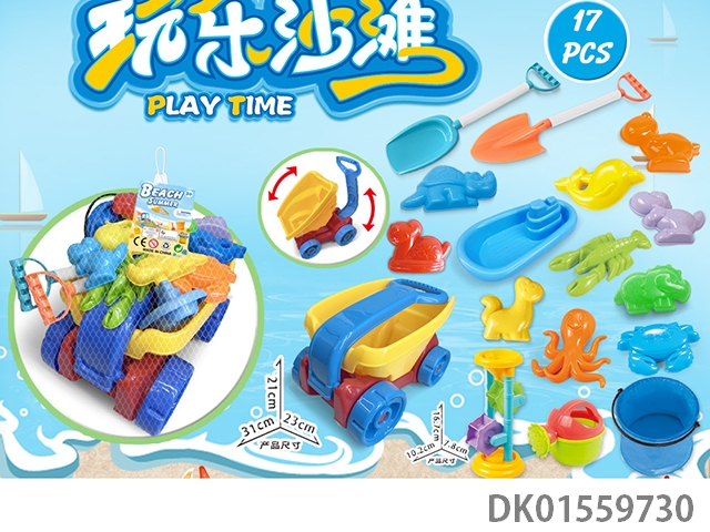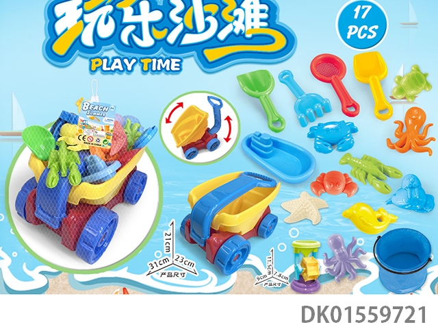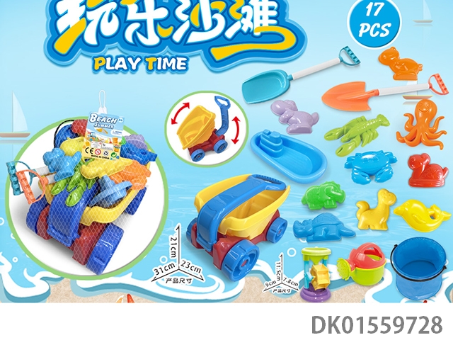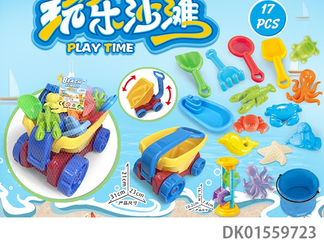 大卡车配沙滩配件+折叠桶+沙漏(17)PCS