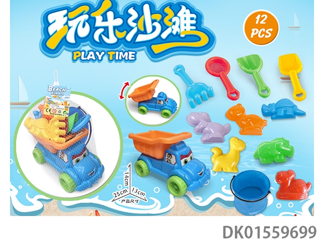 大卡车配恐龙沙滩配件+折叠桶(12)PCS