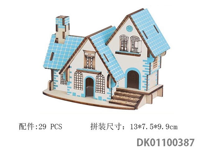 木质3D立体DIY拼装房屋建筑粉蓝梦想小屋