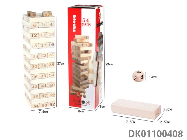 荷木54片木质数字儿童层层叠抽抽乐益智积木(大号)