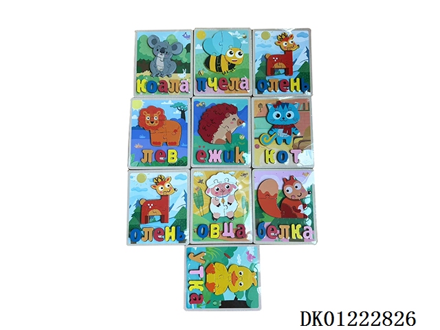 木制10款俄文动物拼图