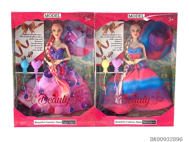 新款11.5寸实身11关节时装婚纱长发公主带帽子气球