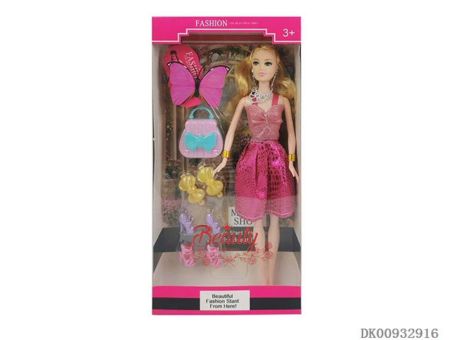高档11.5寸实身时装公主带蝴蝶包包发夹鞋子