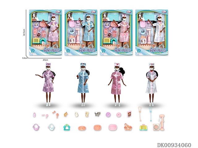 11.5寸宠物医院系列古铜色肌肤女护士多色混装猫狗屋