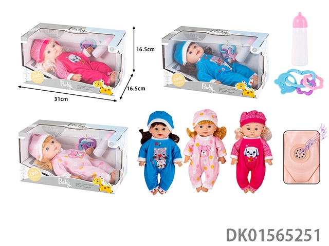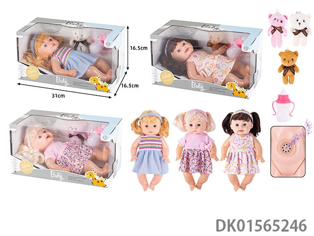 30CM实身搪胶公仔仿真娃娃配IC,奶瓶