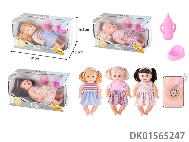 30CM女孩实身搪胶公仔仿真娃娃配IC,奶瓶,小马桶