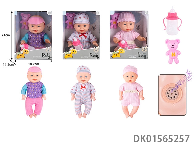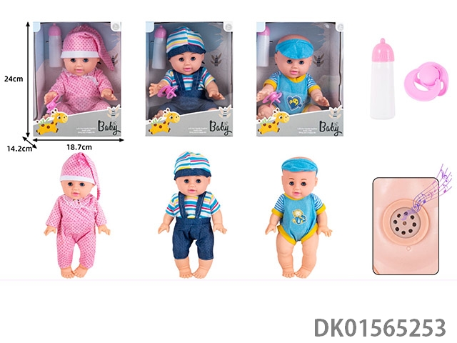 30CM女孩空身公仔仿真娃娃配IC,奶瓶,摇铃