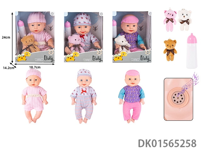30CM女孩空身公仔仿真娃娃配IC,奶瓶,小棉熊