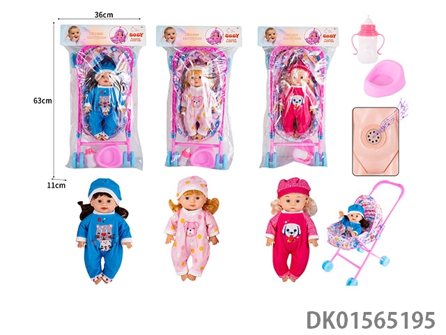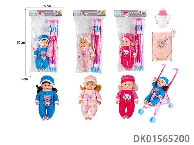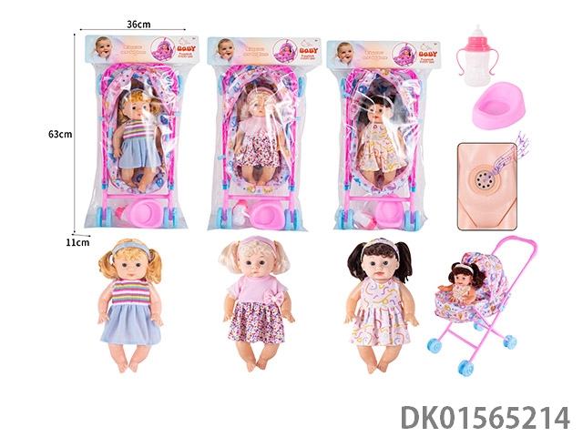 30CM女孩空身公仔仿真娃娃配·IC, 大推车,奶瓶,马桶