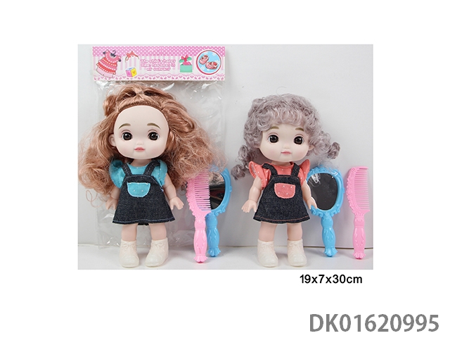 8寸5关节 空身3D真眼直脚萌娃可爱娃娃+镜梳单只2款混
