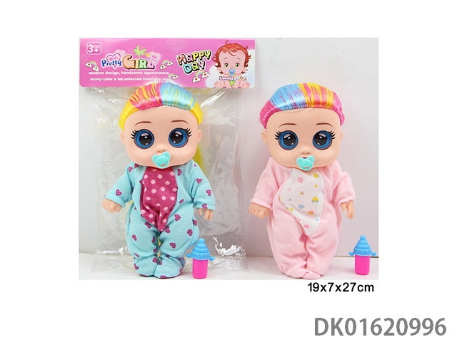 8寸5关节搪胶3D真眼弯脚彩发哭泣娃娃戴奶嘴+IC+奶瓶单只2款混