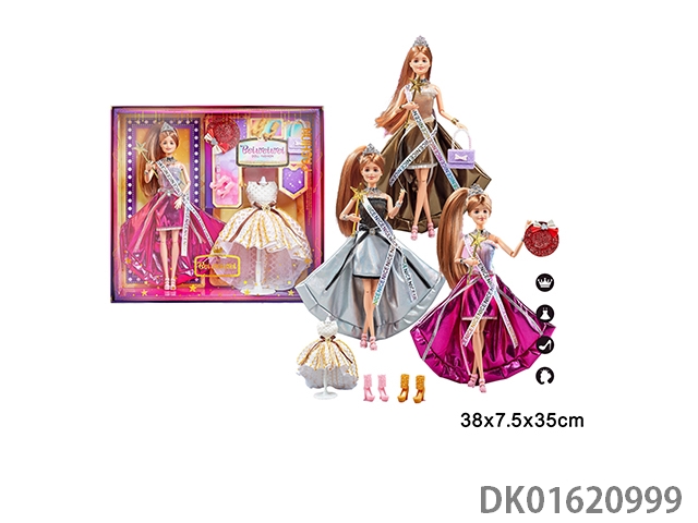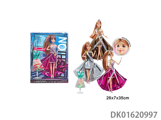 11寸11关节实身彩印眼时尚精美芭比娃娃戴皇冠+权杖+衣服单只3款混