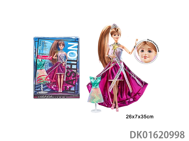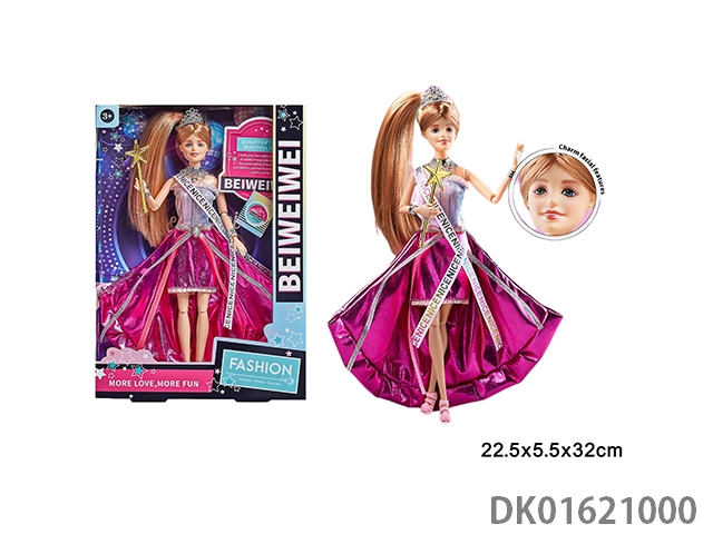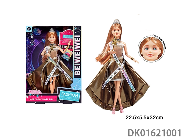 11寸11关节实身彩印眼时尚精美芭比娃娃戴皇冠+权杖+衣服单只1款