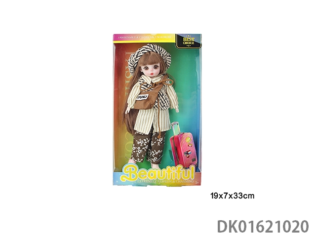 12寸13关节实身3D漫画眼时尚卡通戴帽子+斜挎包萝莉娃娃单只1款