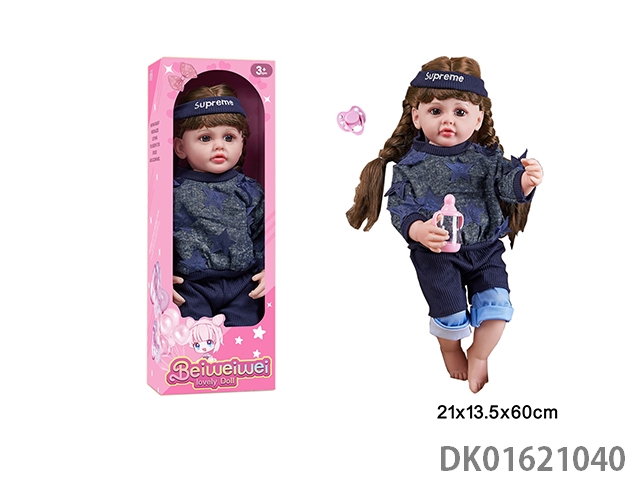 20寸5关节搪胶身体闭眼粉卫衣仿真娃娃重生娃娃带奶嘴+奶瓶单只1款