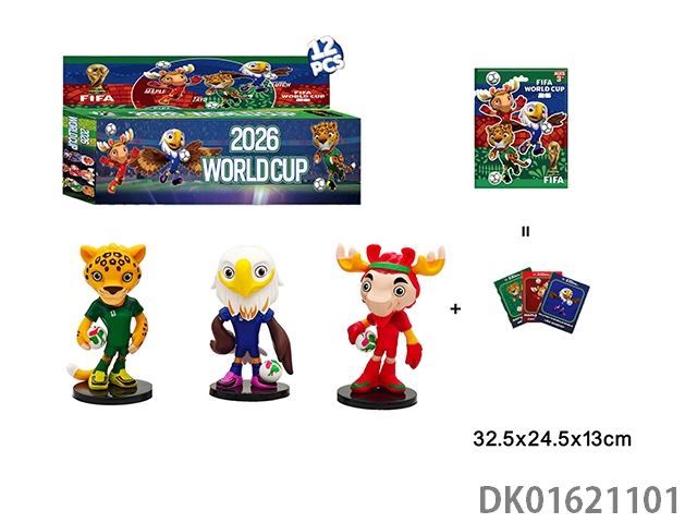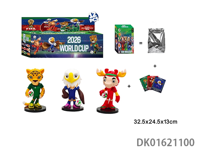 4.5寸2026世界杯吉祥物公仔带底座单只+1张卡片公仔和卡片随机12只/盒