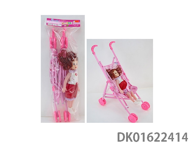 【英文】14寸34厘米空身5关节彩印眼花边裙娃娃+塑料小推车55厘米(过家家芭比)
