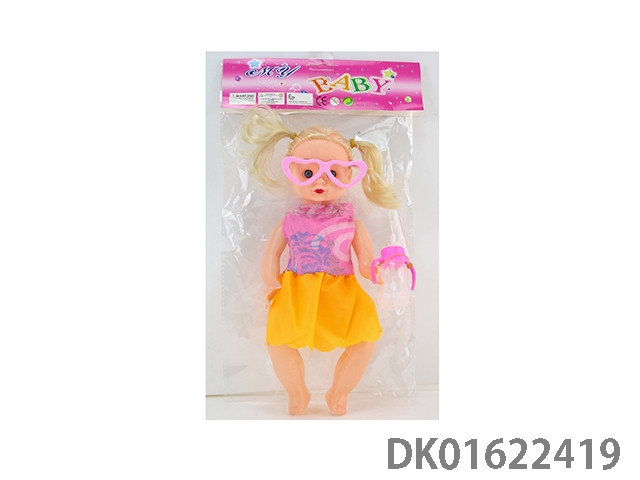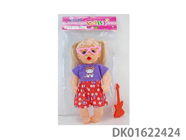 【英文】14寸28厘米活眼空身弯脚肥童娃娃+眼镜+吉他(过家家芭比)