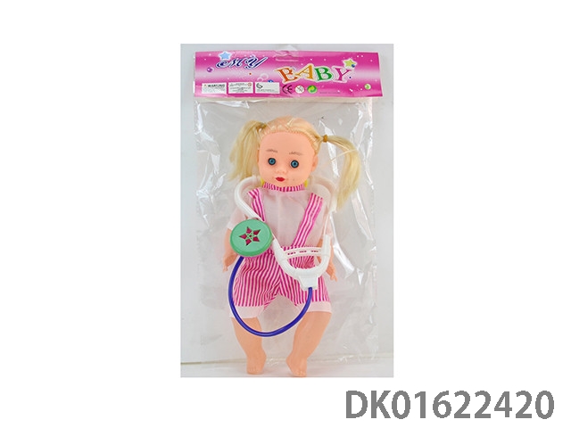 【英文】14寸33厘米5关节彩印眼空身肥童娃娃+听诊器(过家家芭比)