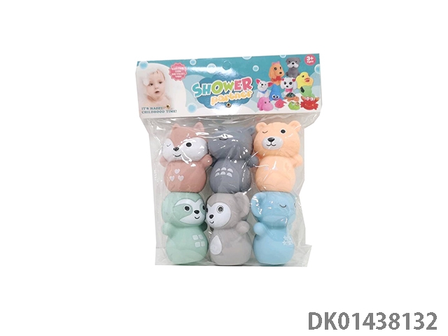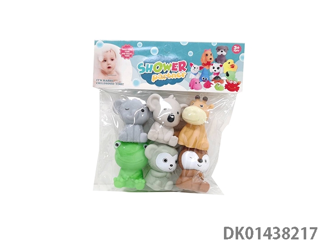 室内嬉水洗澡沐浴捏捏叫搪胶动物混装六只六款猫狗