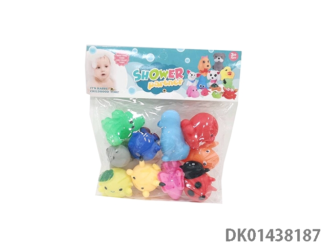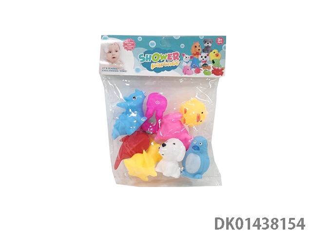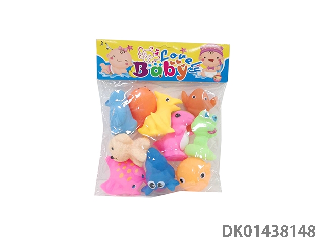 室内嬉水洗澡沐浴捏捏叫搪胶动物混装八只八款