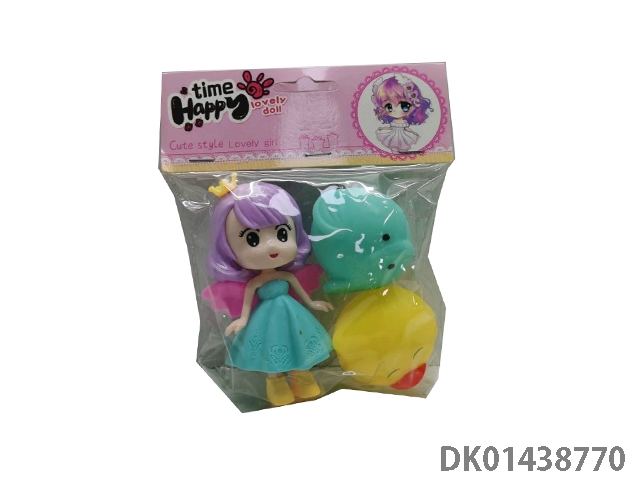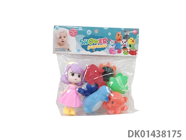 室内嬉水洗澡沐浴捏捏叫搪胶动物混装六只六款+美少女